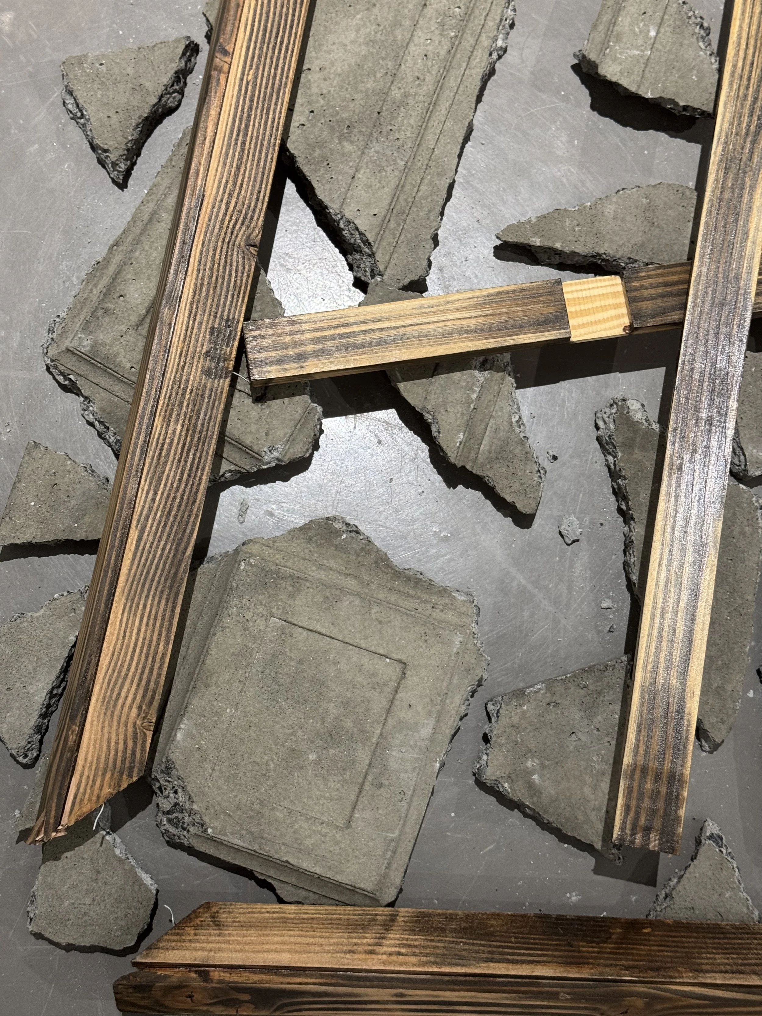 On the other hand, my second stop is next door, Southern EXPOSURES, by Brian J. Brown, an MFA in Sculpture at Georgia State University. The artist expresses the contradictory beliefs, feelings, and concerns he challenged as a Black child in a little town in North Carolina. He develops regained materials such as wood and doors, lighting, and sections from police cars to develop regained materials such as wood to build visual pieces related to his childhood memories. In this exhibition, childhood psychology affects me more than the other aspects. Broken parts, sculptures, shapes, words, and lights gave me that oppressive feeling and made me think that many people experience it and know how it affects society. Brian presents his point visually with strong language, even better than the words.